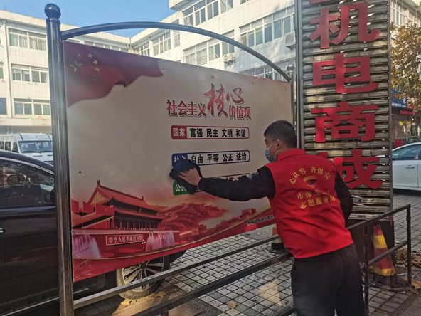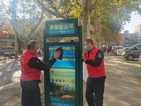 隨后,志愿者們又來到駐地附近的公共道路開展公交站牌和公益廣告牌衛(wèi)生清理工作,通過開展系列志愿服務(wù)活動,改善城市環(huán)境的同時,引導廣大市民提高環(huán)衛(wèi)意識,為營造整潔有序、環(huán)境優(yōu)美的城市環(huán)境貢獻了淄保力量。