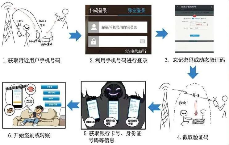 柳州警方立即成立專案組,將3名嫌疑人抓捕歸案。據(jù)交代,嫌疑人雷某和雷某斌負責利用嗅探設備竊取受害人手機信息,接收驗證碼短信,分析機主身份證綁定的支付寶賬號和銀行卡號,徐某則負責“加工”竊取來的信息,并在第三方支付平臺盜刷。從而在沒有接觸受害人手機、銀行卡且事先不知道其密碼的情況下,通過“隔空取物”的方式取走受害人銀行卡里的資金。
