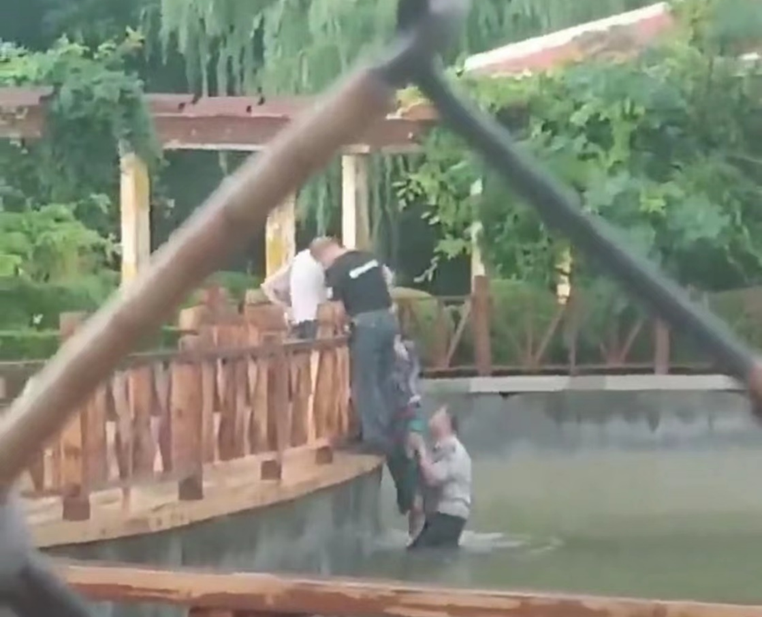 兒童公園有一名女子落水,保安員辛慶祝下水將其救起。網(wǎng)友提供視頻顯示,在該公園人工湖內(nèi),一名保安下水將女子托起,另外兩人站在欄桿附近,用力將女子拉上岸邊。辛慶祝回憶說,女子被救上岸后并無大礙,隨后被他送離公園,辛慶祝說只是舉手之勞而已。他的舉手之勞溫暖了這座城市,更是我們身邊的凡人英雄,為他們點(diǎn)贊。